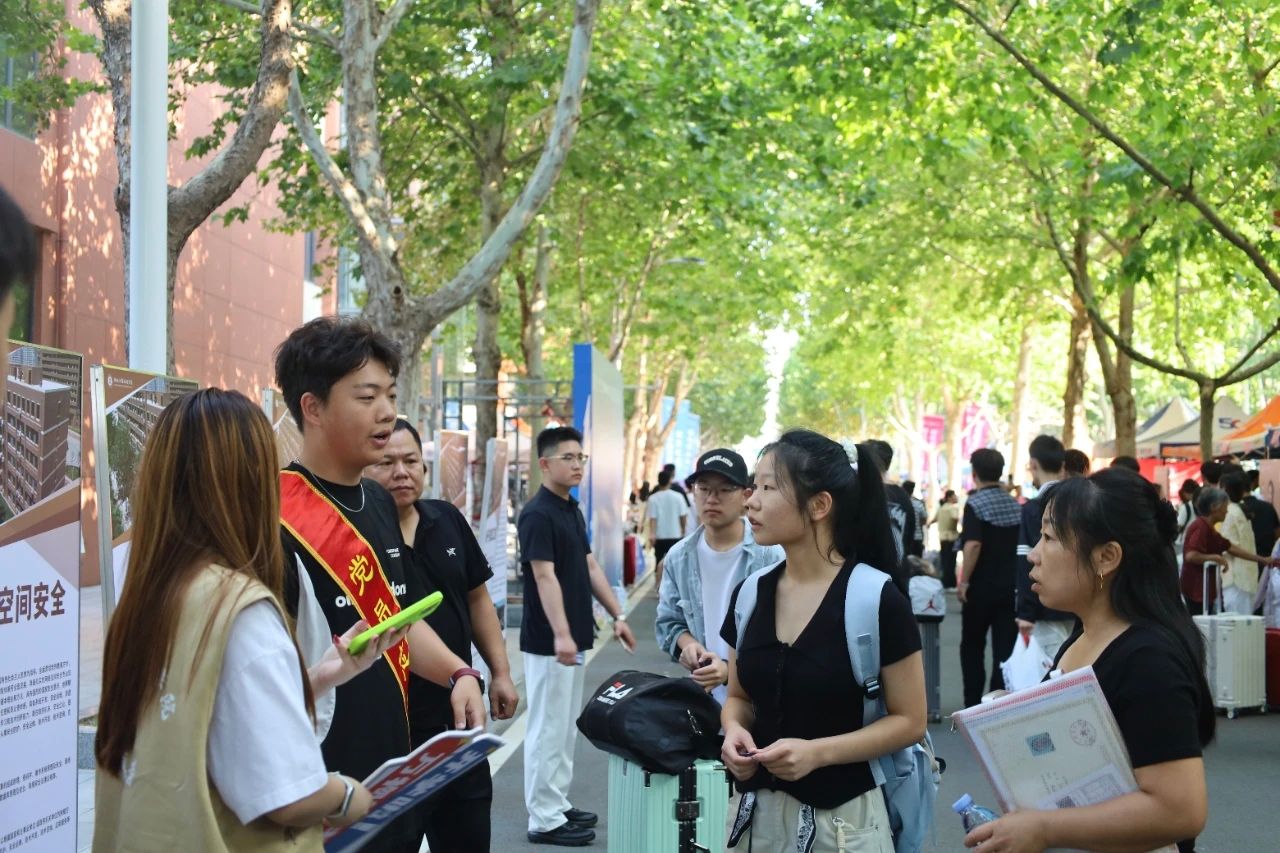 全校各部门织成一张高效协同联动服务网,暑假起即通过视频、推文、直播构建情感链接,让新生入校前已心有归属。各部门联动优化流程、细节与环境,并设有“党员先锋岗”,将“安全”“便利”“温暖”融入每一个细节,信息平台实现“数据多跑路,学生少跑腿”,报到流程轻量化、智能化,凸显学校治理的现代化水平持续提升。