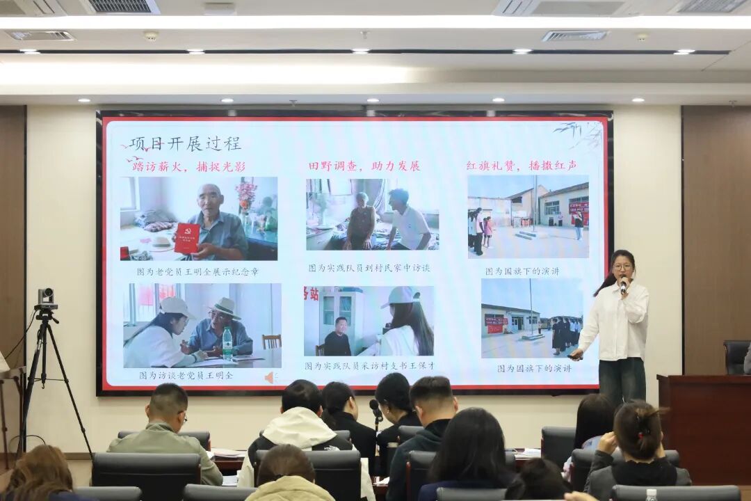 为深化实践育人成效,促进成果转化与经验共享,我校近日成功举办2025年暑期社会实践路演汇报。活动由团委樊立鑫老师主持,团委书记郭静、副书记李雨濛及各二级学院团总支书记出席参加。
