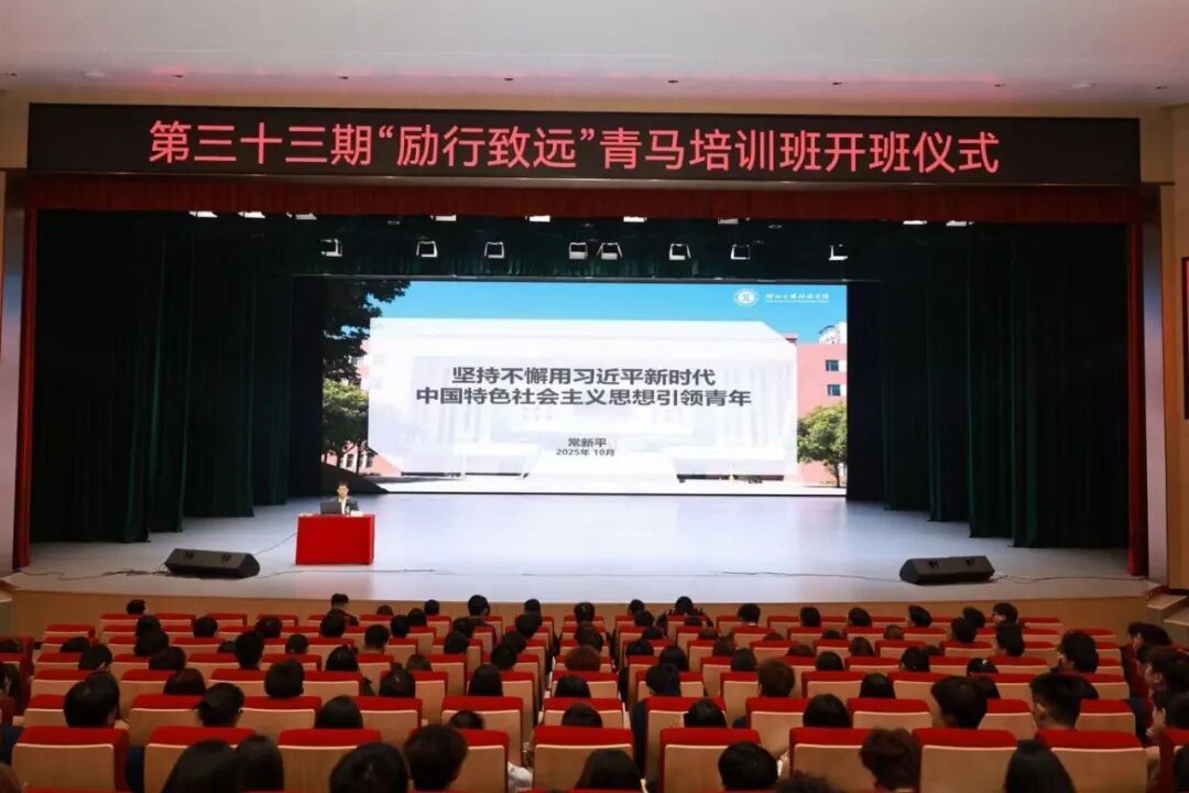 为深入学习贯彻习近平新时代中国特色社会主义思想和党的二十大精神,加强对青年学生的思想政治引领,培养坚定的青年政治骨干,10月29日下午,河北工程技术学院第三十三期“青年马克思主义者培养工程”2025级新生班团干部青马培训班邀请校党委书记常新平讲授开班第一课。