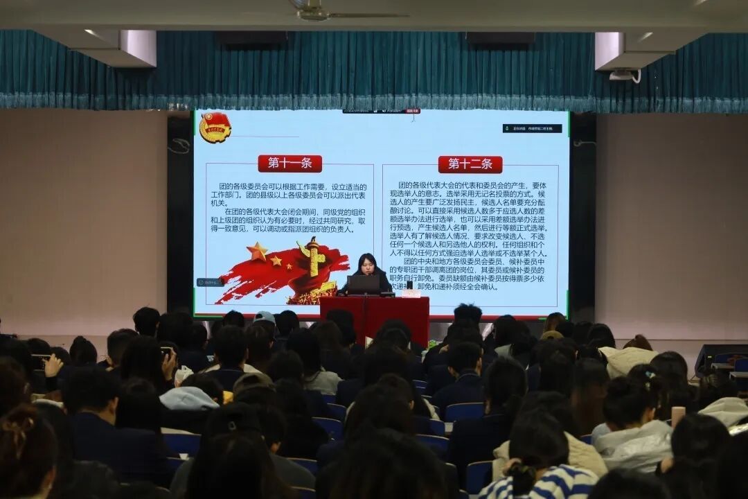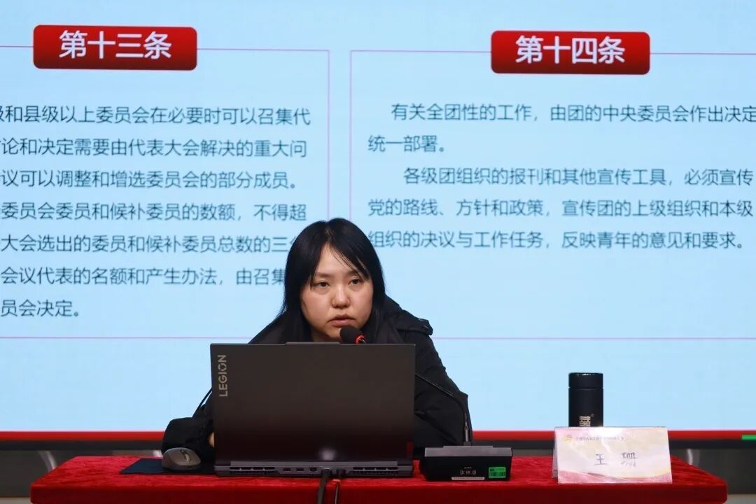 讲座中,王珊老师还详细讲解了团员的年龄要求、入团誓词、“三会两制一课”组织生活制度等内容,明确团员应履行的学习党的理论、参与志愿服务、遵守团的纪律等义务,也阐明团员享有的选举权、申诉权等权利。团旗团徽的规范使用、团的组织体系、团干部队伍建设以及“全团带队”职责等内容也纳入重点讲解,帮助学员全面把握团章要义,增强组织观念。