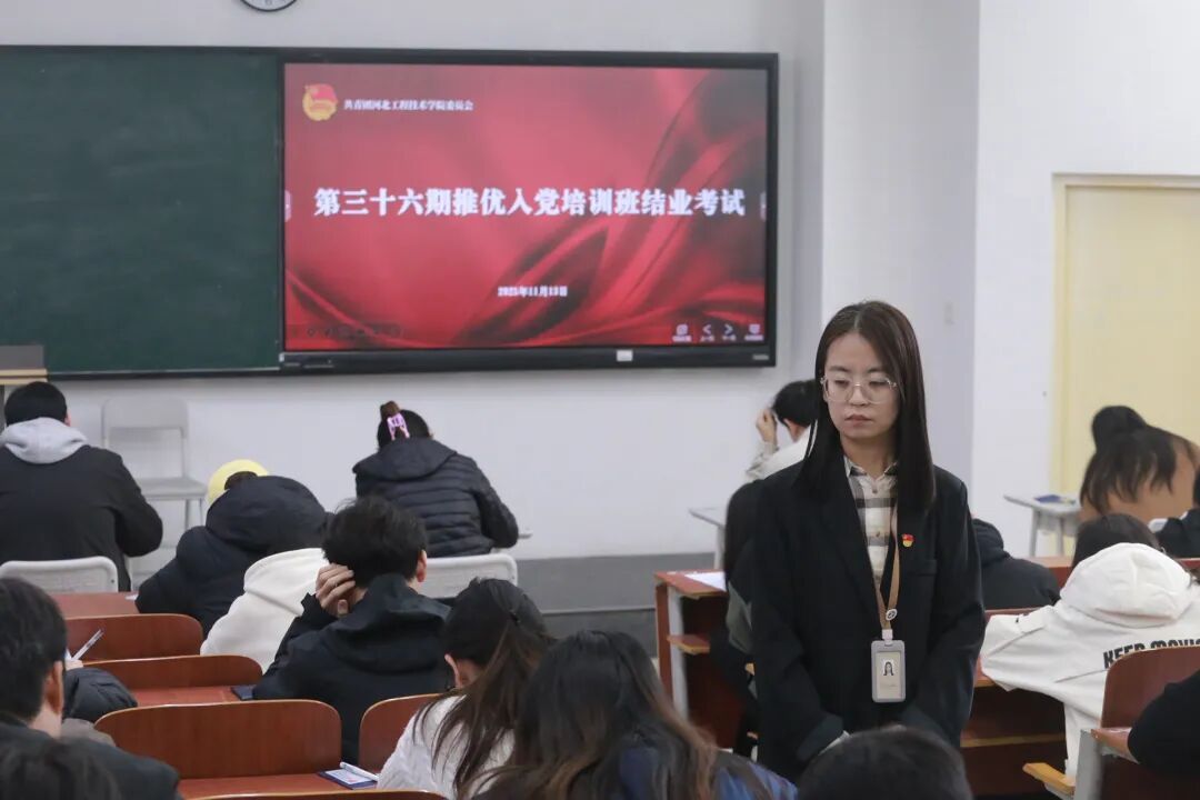 为深入学习贯彻习近平新时代中国特色社会主义思想和党的二十大、二十届三中和二十届四中全会精神,进一步加强对入党积极分子的培养教育,提升其政治素养和理论水平,2025年11月13日下午,校团委组织开展了第三十六期“推优入党”结业考试。本次考试在主校区启行楼学生活动中心、知行楼4-1、4-2、203教室及灵寿校区5-208教室同步进行。