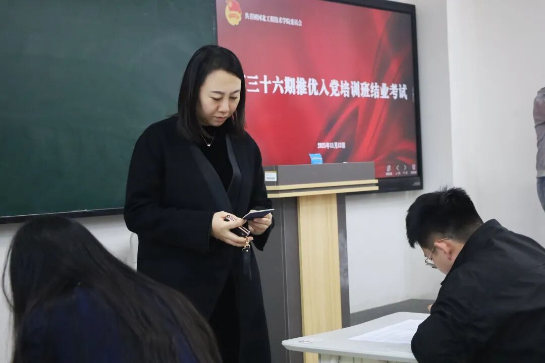 考试期间,校党委宣传部部长、校团委书记郭静担任主巡考,各考场由校团委老师、各二级学院团总支书记与学生骨干共同监考,确保考试秩序井然、纪律严明。考生凭有效证件入场,严格遵守考场规定,沉着应考、认真作答,展现出良好的考风考纪。