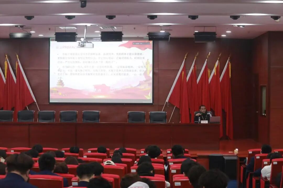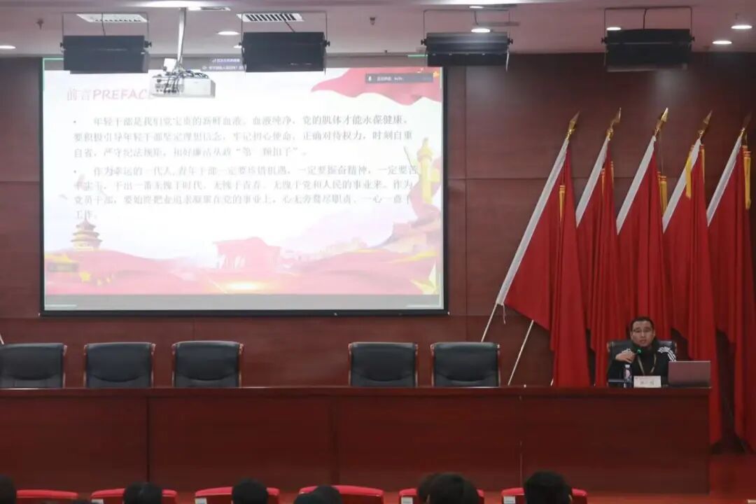 为深入学习贯彻党的二十大精神,引导青年骨干锤炼政治品格、强化责任担当、筑牢廉洁底线,近日,河北工程技术学院第三十三期“砺行致远”班团青马培训班在报告厅成功举办“如何做一名忠诚、担当、务实、奉献的新时代学生骨干”主题讲座。本次讲座特邀商学院团总支书记陈广园主讲,全体青马学员参加。
