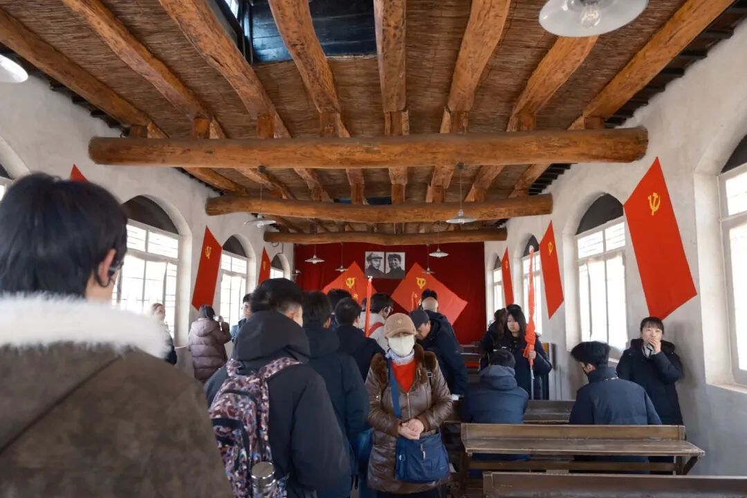 期间,部分团学骨干在庄严的党旗下整齐列队,重温入党誓词。铿锵有力的誓言回荡在革命圣地,表达了青年学子坚定继承革命传统、矢志不渝跟党走的决心。
