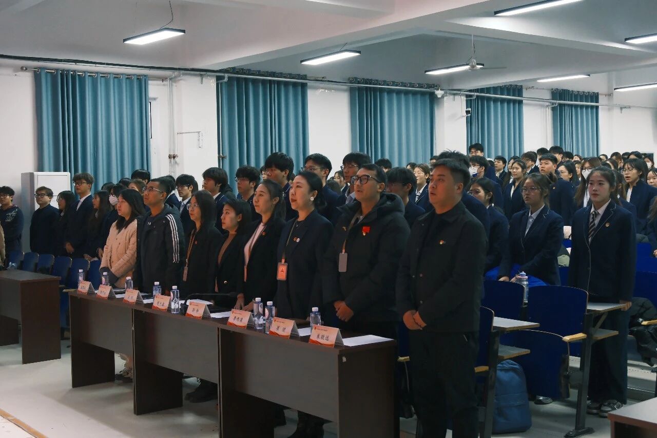 仪式在雄壮的国歌声中拉开帷幕。党委宣传部部长、校团委书记郭静,校团委副书记李雨濛、各学院团总支书记出席此次会议。