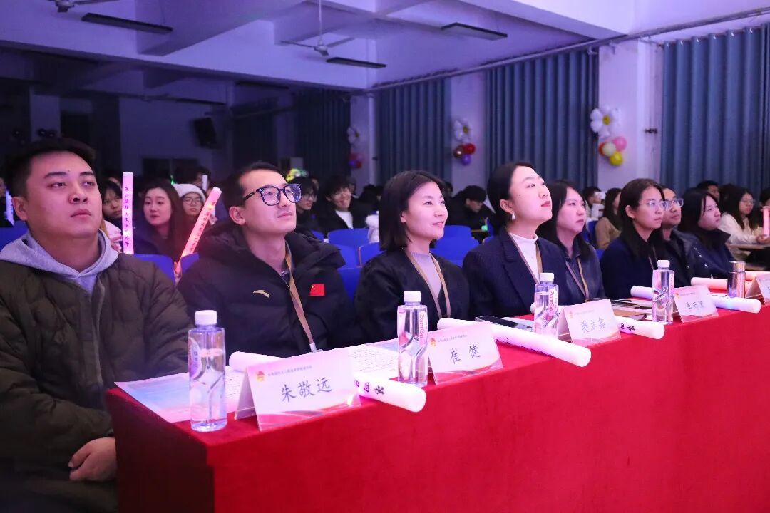 近日,我校第四届校园文化艺术节闭幕式暨颁奖晚会在学生活动中心举行。校团委副书记李雨濛,校团委老师王珊、樊立鑫,网络空间安全学院团总支书记崔健、人工智能学院团总支书记王凤、土木与建筑学院团总支书记朱敬远、商学院团总支书记陈广园、艺术与传媒学院团总支书记王若林,以及获奖学生代表齐聚一堂,共同见证这场青春艺术的璀璨收官。
