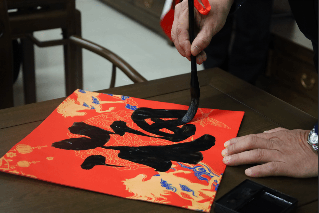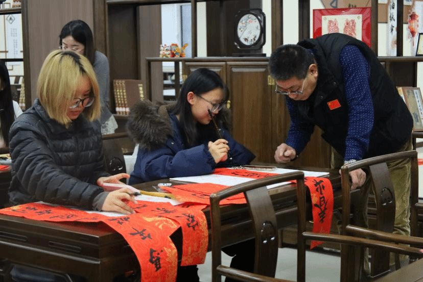 书写“福”的老师与学生