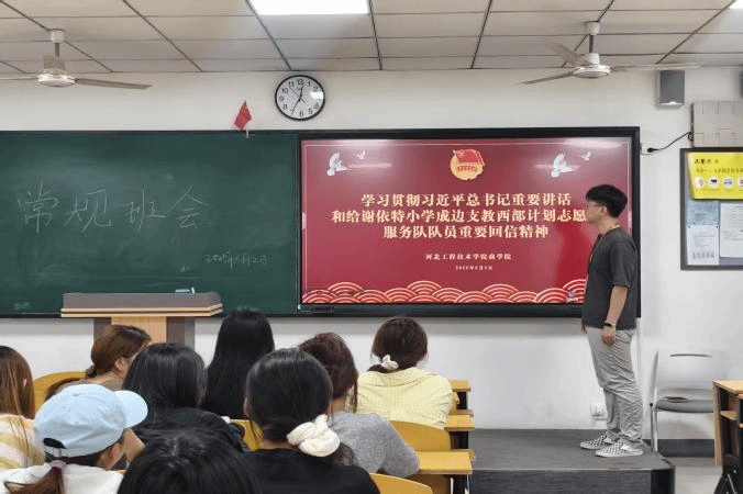 为引导青年学子深入学习贯彻习近平总书记重要讲话和给谢依特小学戍边支教西部计划志愿服务队队员重要回信精神,更好地团结、组织、动员广大青年在中国式现代化建设中挺膺担当,以奋斗姿态书写绚丽青春篇章。商学院组织开展学习贯彻习近平总书记重要讲话和给谢依特小学成边支教西部计划志愿服务队队员重要回信精神的主题班会。