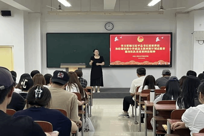 辅导员老师向同学们宣读了习近平总书记的重要回信内容。一字一句,如同一束束温暖而明亮的光,照亮了同学们的心房。总书记对支教志愿者们的肯定,以及对广大青年的殷切期望,在教室里回荡,激起了同学们内心深处的共鸣。